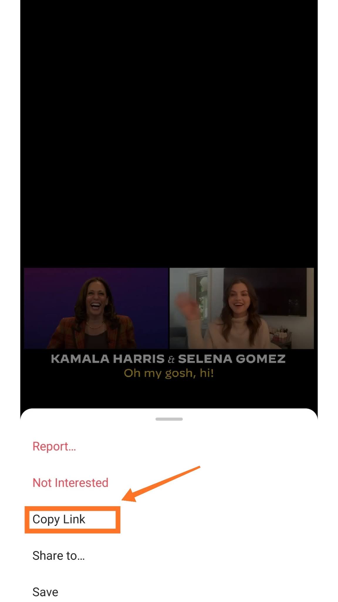 Setelah memilih video, beberapa opsi akan muncul. Pilih Salin Tautan untuk menyalin URL video.